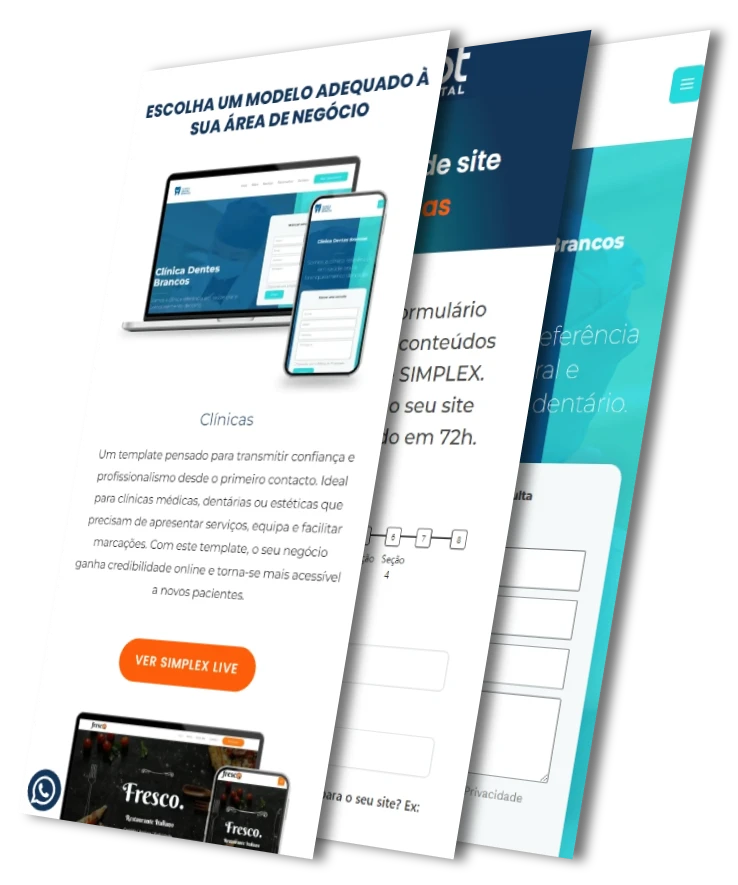 O Simplex foi criado com um objetivo: ter um site profissional, de forma rápida e sem ultrapassar o seu orçamento.